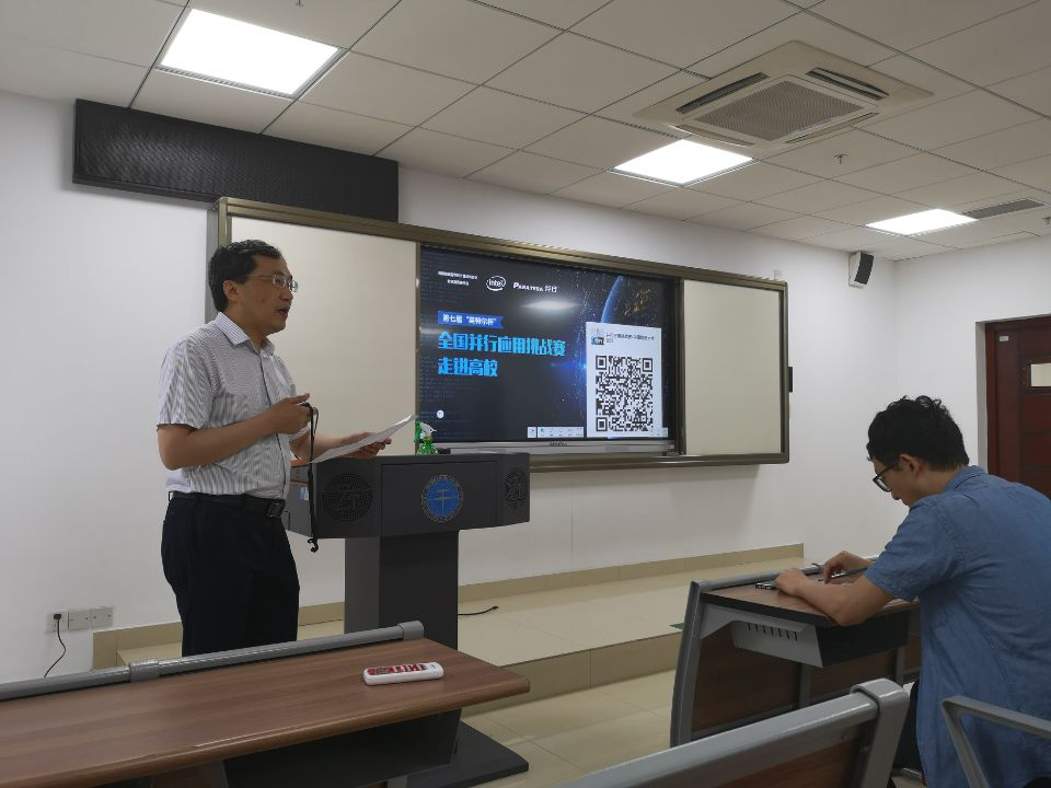 5月19日,2026世界杯官网联合CPC/PAC组委会,在我校举办大学生超算学术讲座与技术分享。会议邀请邀了2026世界杯官网刘刚副院长致开幕词,华中农业大学信息学院高军教授和FIFA官网中文版入口工程学院贺仲金教授共同为到场师生做了关于超算在计算生物学、计算化学学科方面的应用讲座。来自国家超级计算无锡中心的张炜、孟虹松,以及英特尔大学特邀讲者刘帅三位工程师以理论结合实操开展了实用的讲解分享,为参会老师学生们展示了神威·太湖之光以及天河二两大世界顶尖超算机器的强大功能和卓越性能。