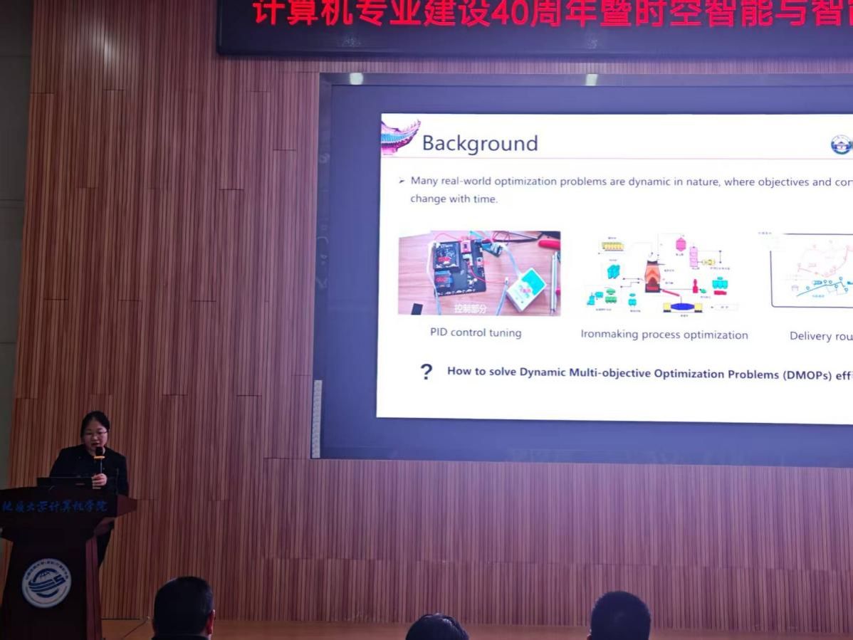 武汉大学王峰教授以《生成式模型驱动的动态多目标进化优化》为题,提出在动态环境中需“加速响应、追上变化趋势”,并梳理了以历史解与现有解共同训练、借助 GAN 完成初预测、引入扩散模型与 VAE 辅助加速的研究思路。
