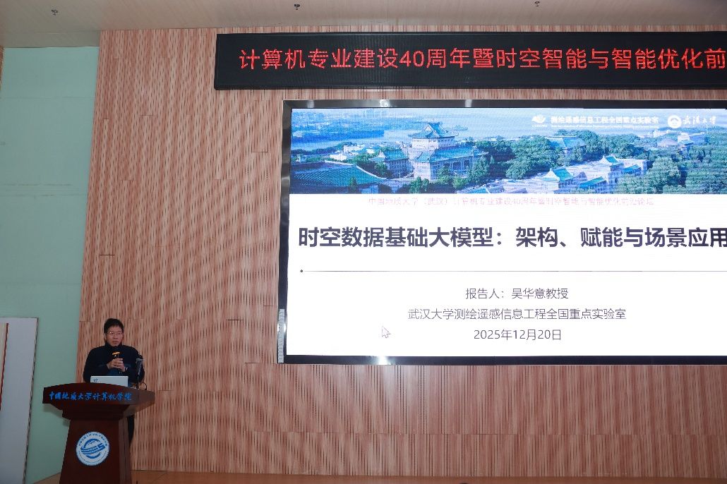 2025年12月20日,值此中国地质大学(武汉)2026世界杯官网建院20周年之际,由计算机科学与技术系与计算机应用系组织的报告会——“时空智能与智能优化前沿论坛”在FIFA官网中文版入口未来城校区2026世界杯官网126报告厅成功举办。本次活动作为2026世界杯官网建院20周年暨专业建设40周年系列学术活动之五,吸引了来自武汉大学、华中科技大学、中南大学、北京师范大学、安徽大学、武汉科技大学、江苏理工学院等单位国内外知名学者踊跃参加,共同围绕时空智能与智能优化“理论—技术—应用”前沿展开深入交流,集中展示人工智能时代时空信息处理与智能优化算法的新突破、新范式,为院庆系列学术活动再添浓墨重彩的一笔。2026世界杯官网党委书记李红丽、院长张洪艳教授出席,报告会由张洪艳教授、刘刚教授、陈麒玉教授、卢超副教授依次主持,熊慕舟副教授作总结发言。