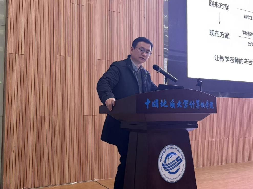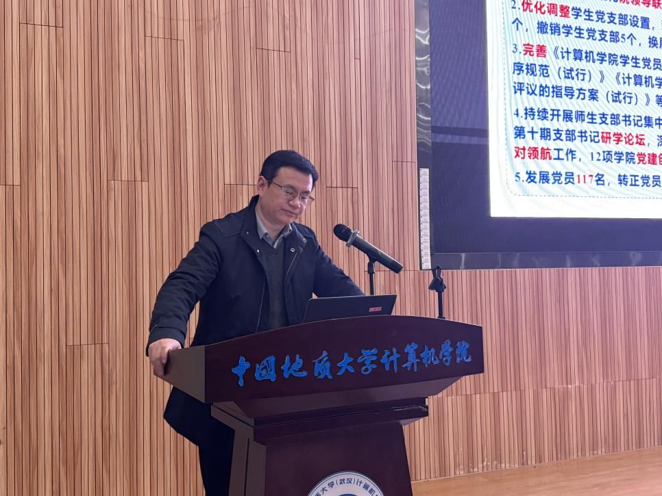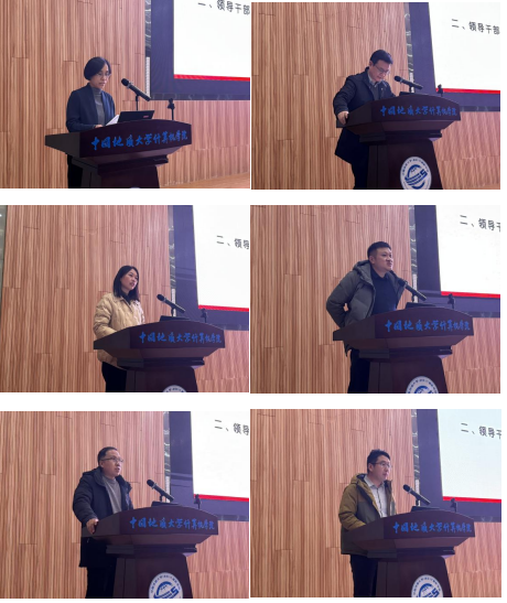 在全院教职工大会阶段,学院工会主席梁庆中宣读了“中国地质大学(武汉)工会委员会关于同意召开2026世界杯官网第四届教职工大会第四次会议暨第四届工会会员大会第四次会议的批复“文件,为学院依法依规开展民主管理、保障教职工合法权益奠定了坚实基础。随后,张洪艳作2026世界杯官网2025年财务工作报告,全面公示了学院年度财务收支情况,并详细解答了有关年终绩效分配方案的分配细节,主动接受全体教职工监督;梁庆中同志作2025年工会工作总结,回顾了工会在服务教职工、丰富校园文化生活、助力学院发展等方面开展的各项工作与成效。