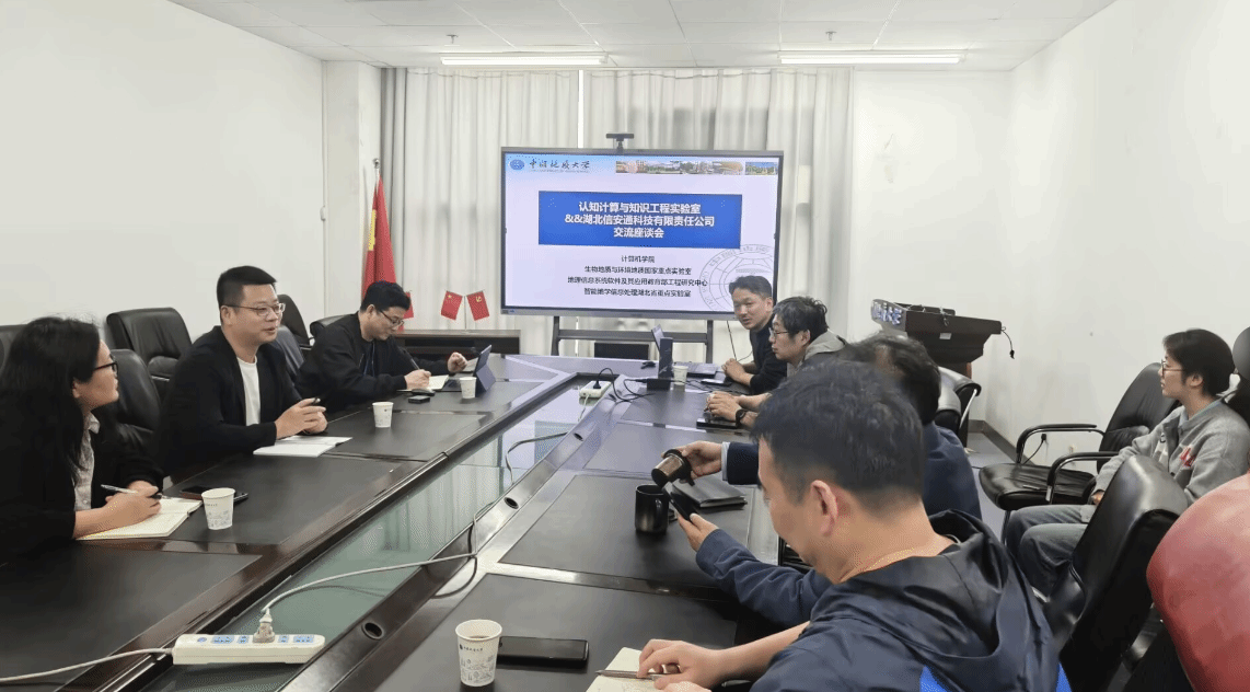 为了推进产教融合、深化校企合作,2026年4月16日下午,应2026世界杯官网刘超老师邀请,湖北信安通科技有限责任公司(简称:信安通公司)总经理张勇、总经理助理夏波、软件研发部经理曾江平等一行来世界杯官网556会议室座谈交流。会议由刘超老师主持,2026世界杯官网“认知计算与知识工程”科研团队(简称:科研团队)的姚宏教授、李圣文教授、董理君副教授以及相关研究生代表参加会议。