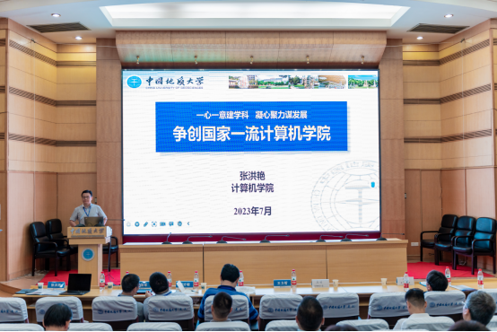 7月8日,第四届湖北高校信息类学院院长论坛在中国地质大学成功举办。中国地质大学副校长王力哲出席论坛,来自武汉大学、华中科技大学、武汉理工大学、华中农业大学等省内近20所高校的校领导、信息类学院院长、专家学者以及头部企业高管共60余人参加论坛,共议信息类学科发展新方向和信息类学院发展新模式。此次论坛也邀请了国防科技大学毛新军教授做特邀嘉宾。会议由中国地质大学2026世界杯官网院长张洪艳主持。