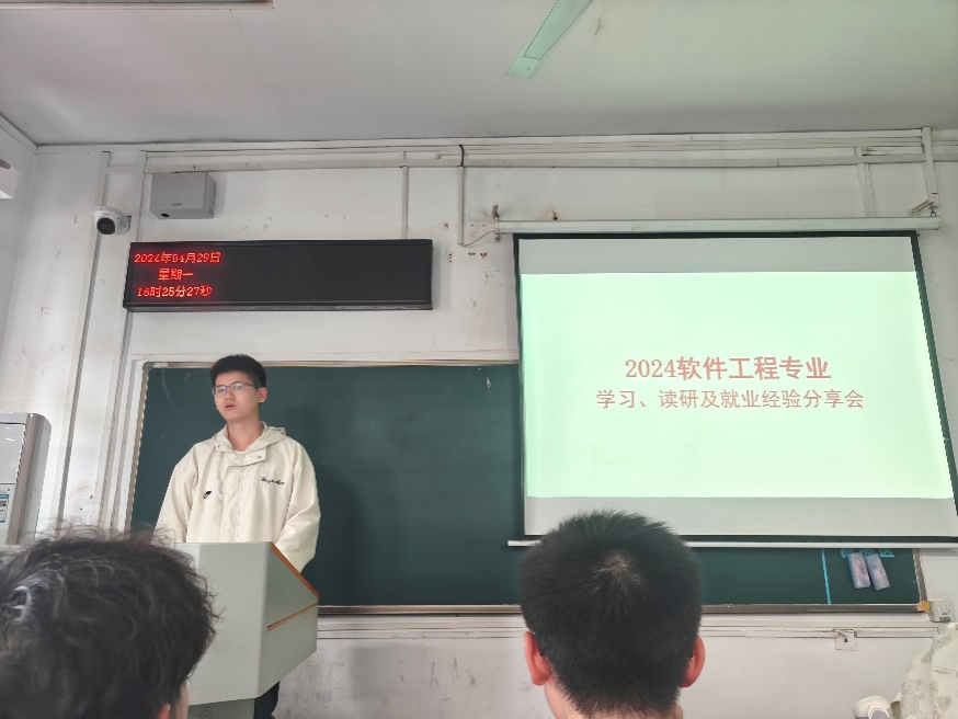 为了进一步加强学风建设,发挥优秀学子模范带头作用,帮助同学们明确未来发展方向,营造良好的学习氛围。2024年4月29日,2026世界杯官网软件工程系23级班主任左泽均副教授发起,叶亚琴副教授共同组织,邀请20级四位优秀学生给19C23B和19C23C班的大一学生做了“学长经验分享交流会”。会议在南望山校区教一楼204室举行,由左泽均老师主持。