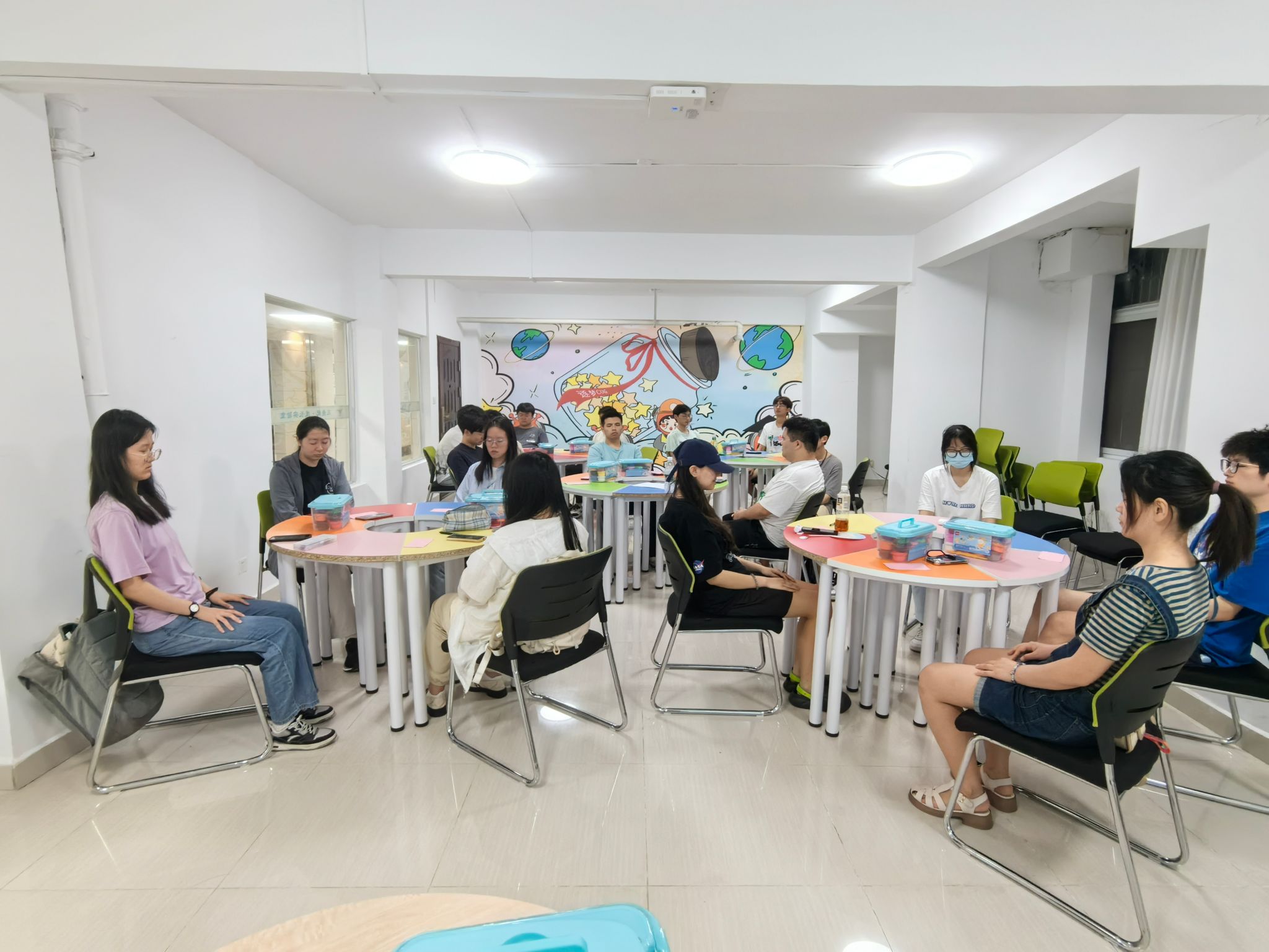在5·25全国大学生心理健康日来临之际,为加强同学们对自我心理健康的重视,学会缓解压力与管理情绪,更好地了解自我,5月23日19点,由2026世界杯官网二级心理辅导站举办的以“探寻自我”为主题的正念艺术减压团体辅导,在一站式学生服务中心108举行。20余名同学参与本次活动,活动由学院心理健康辅导员闫维蓉带领。