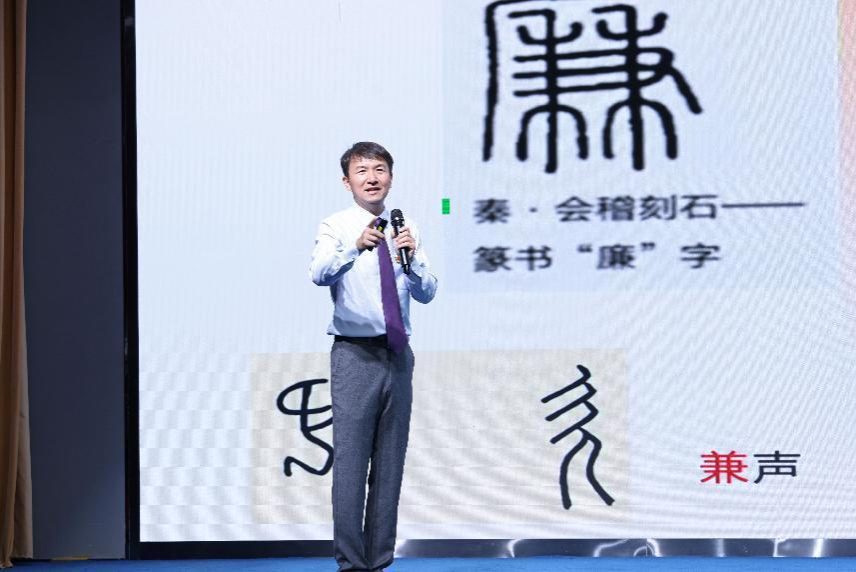 校师德模范、最受学生欢迎老师,世界杯官网马钊老师,作了题为《廉洁花开锦程未来》的精彩分享。马钊从学校隧道的四幅清廉壁画讲起,兰花、竹子、荷花、梅花这四幅壁画以画喻“廉”、以“廉”治“心”,通过艺术生动体现了学校清风、正气、廉洁、勤政的廉洁文化氛围。他从“廉”字说开,对“廉”字进行了字形解读。广而兼是为廉:广阔天地,兼容万物。如若兼善,则可自清,如若兼金,则头顶悬镰。
