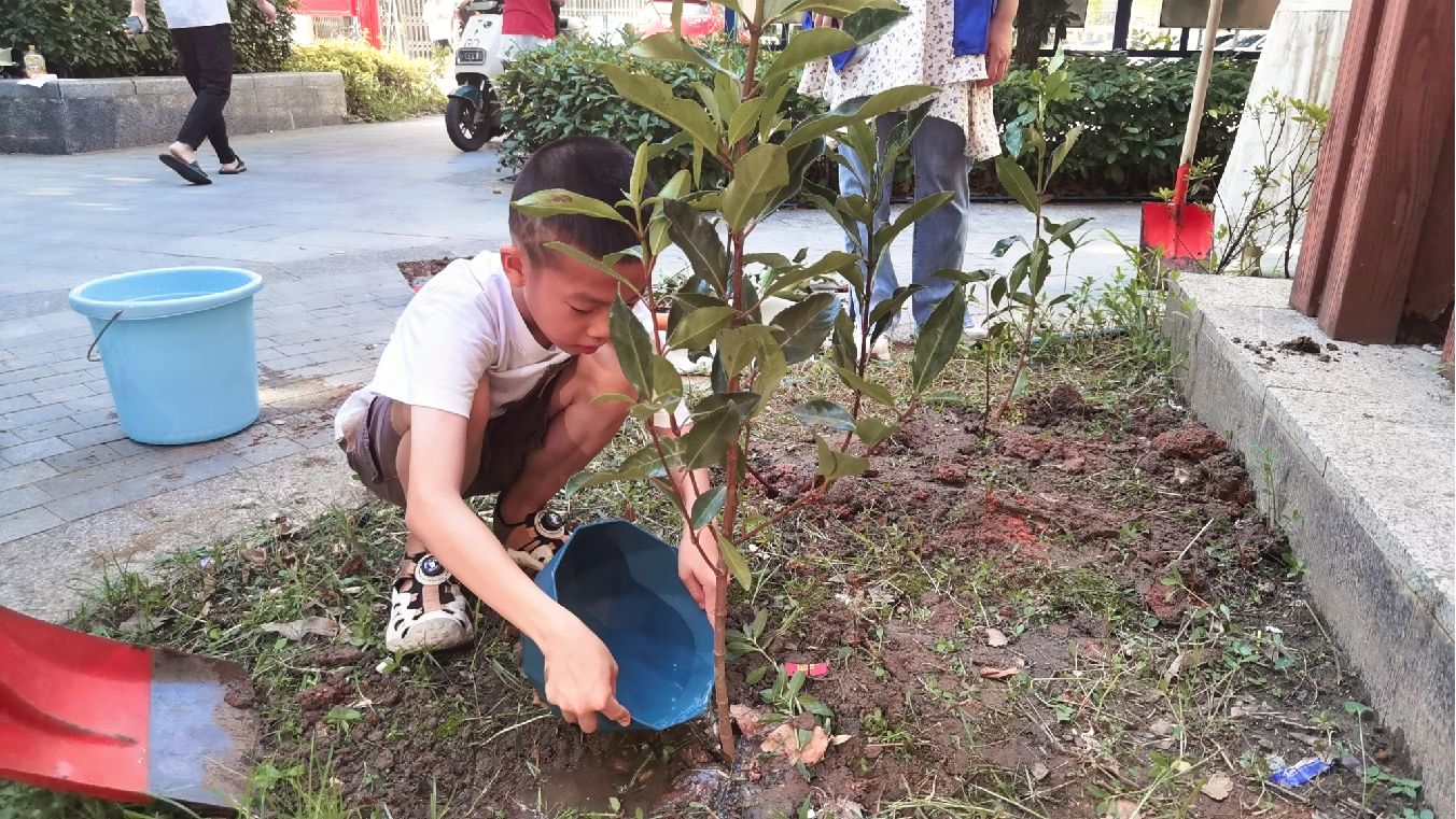 小朋友们昂扬的热情就如七月的阳光,纯粹而炙热,个个争当社区绿化的小小美容师。