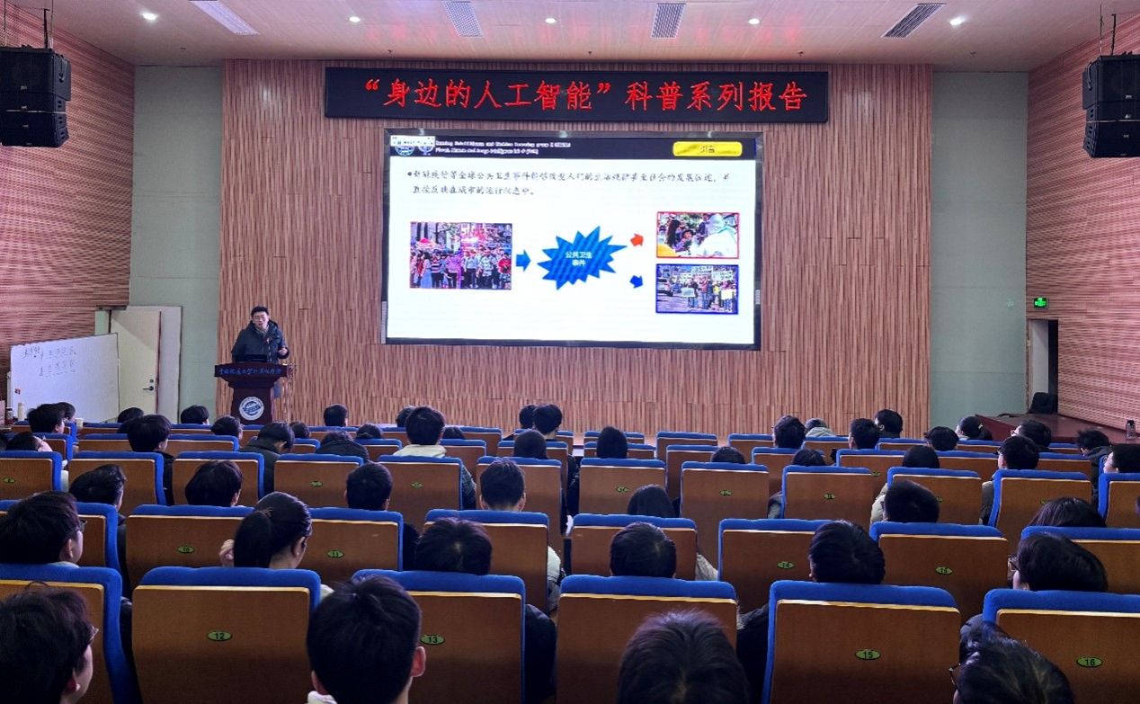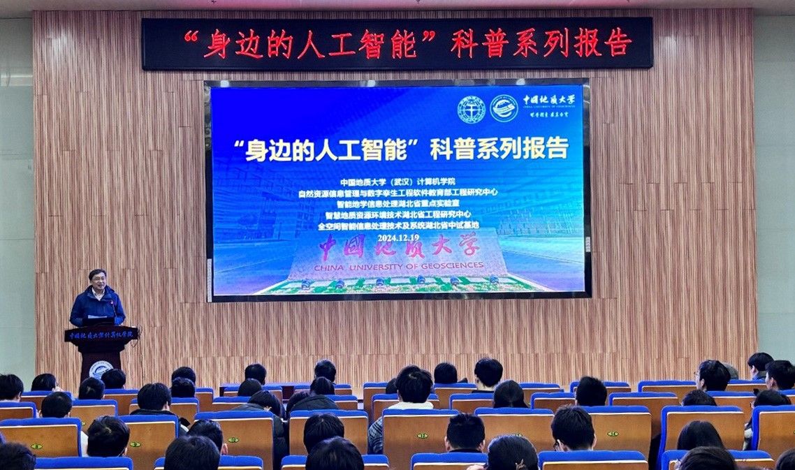 习近平总书记指出:“科技创新、科学普及是实现创新发展的两翼,要把科学普及放在与科技创新同等重要的位置”。为促进世界杯官网科学技术普及工作,弘扬科学精神,激发创新活力,12月19日下午,学院举办的“身边的人工智能”科普系列报告活动在计科楼126报告厅进行,邀请了武汉大学测绘遥感与信息工程国家重点实验室武辰教授、世界杯官网数据科学与大数据系李程俊副教授、计算机应用系陈麒玉教授、智能科学与技术系黄绍广教授、软件工程系尚建嘎教授、信息安全系朱静副教授、计算机科学与技术系甄慧翔副教授作专题科普报告,学院副院长刘刚主持活动。报告会得到了自然资源信息管理与数字孪生工程软件教育部工程研究中心、智能地学信息处理湖北省重点实验室、智慧地质资源环境技术湖北省工程研究中心、全空间智能信息处理技术及系统湖北省中试基地等科研平台的支持,也是世界杯官网建设的武汉市科普基地的活动之一。200余名师生参加了本次活动。