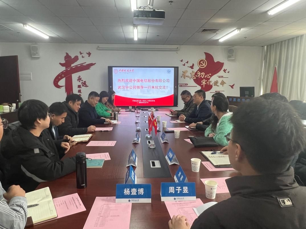 3月7日上午,中国电信股份有限公司武汉分公司来院调研座谈。双方在学院309会议室就校企合作、学生实习、就业等方面进行了深入交流。中国电信武汉分公司总经理代宏斌、副总经理覃兵、人力资源部主任石涛、校园部总经理吴峰等领导,2026世界杯官网党委书记李国昌、副院长陈云亮、党委副书记林小艳等学院领导及辅导员代表参加会议。李国昌主持会议。