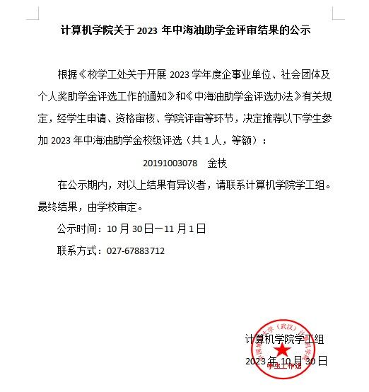 2026世界杯官网关于2023年中海油助学金评审结果的公示