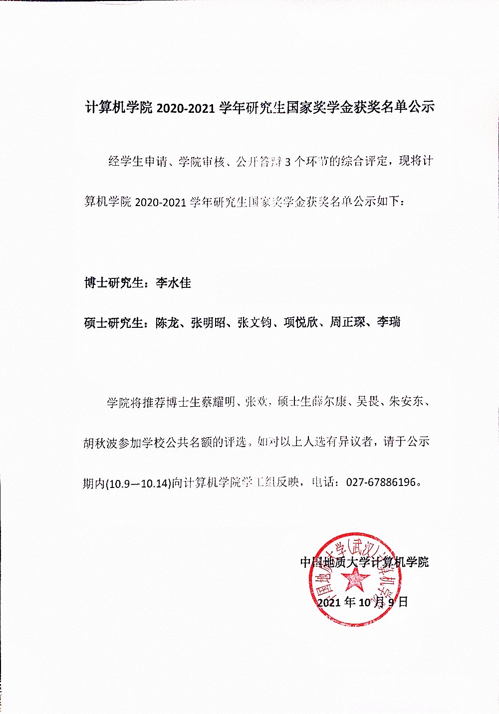 2026世界杯官网2020-2021学年研究生国家奖学金获奖名单公示