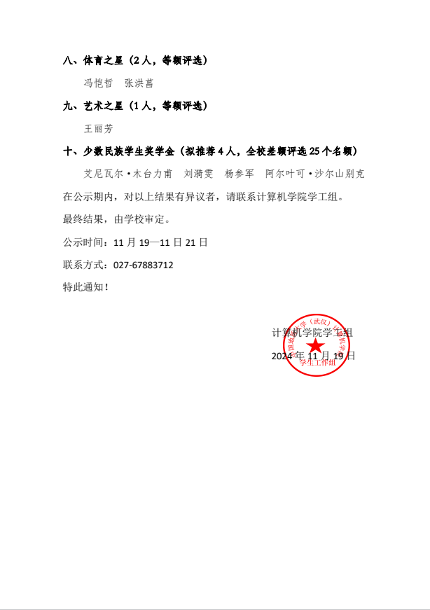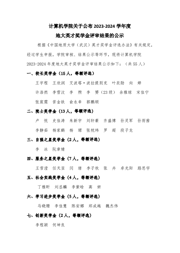 2026世界杯官网关于公布2023-2024学年度地大英才奖学金评审结果的公示