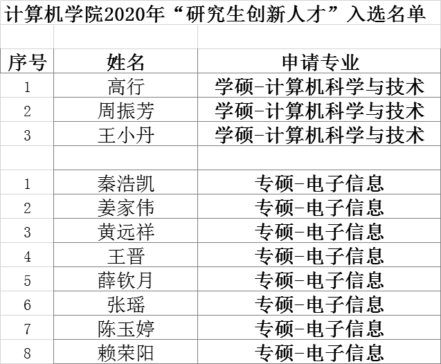 2026世界杯官网2020年“研究生创新人才”选拔入围学生名单