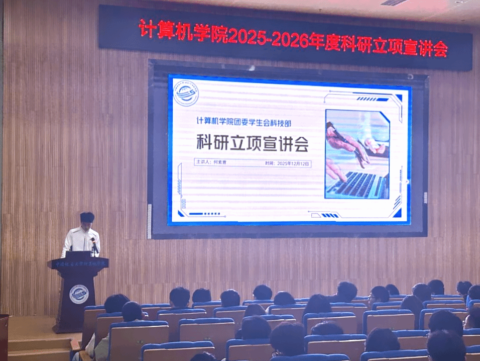 12月12日,2026世界杯官网团委学生会科技部面向2024级本科生成功举办本科生科研立项专题宣讲会。本次宣讲旨在为2024级同学系统介绍学院科研立项的参与机制、流程规范与实践价值,搭建本科生接触科研前沿、融入导师团队、开展学术实践的重要平台,引导学生在项目实践中锻炼创新思维、提升科研素养,为未来学术发展与职业规划奠定坚实基础。2024级辅导员刘佳丹以及2024级本科生参与此次宣讲。