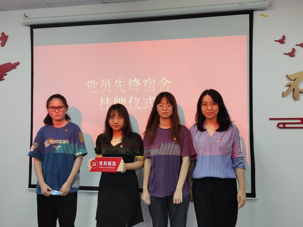 傅苑为先进党员宿舍授牌。学院二组团四栋316宿舍多次获评文明宿舍、最美宿舍、百佳宿舍,宿舍成员平均学分绩点超3.8,且为全院300余间本科宿舍中唯一的全党员宿舍,在广大同学中起到了榜样作用。