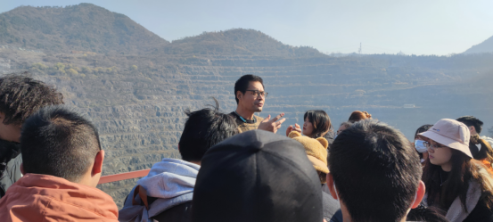在矿区的观景平台上,结合现场实地观察情况与课上讲授的勘探知识,张老师对于大冶铁矿区的前期勘探工作、矿体概况及采矿布置进行了详细的讲解,身临其境的教学使得同学们对于矿产勘察与开采工作有了全新的认识。