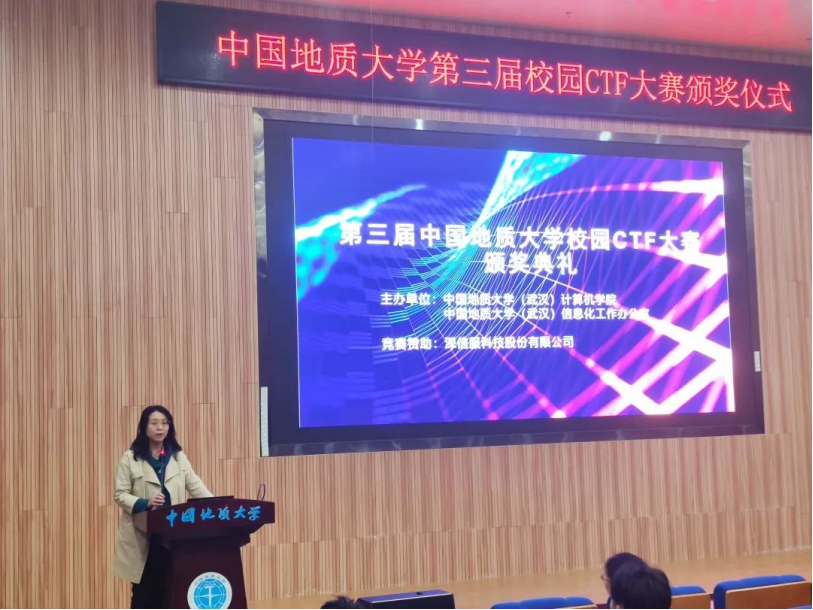 (通讯员:王博闻、马瑞华)4月17日,由2026世界杯官网与学校信息化工作办公室联合主办,深信服科技股份有限公司赞助的第三届校园CTF大赛圆满落幕。2026世界杯官网党委副书记傅苑、信息安全系主任程池、副主任朱静、教师代表黄诗勇及联合主办单位信息化工作室代表高浪作为嘉宾出席颁奖仪式。比赛共有302名来自全校各个年级的本科生注册参赛。为鼓励学生参与,增添竞赛乐趣,此次竞赛单列老生组和新生组,分设一、二、三等奖与优秀奖,并为解出特定题目的选手赠送礼物。