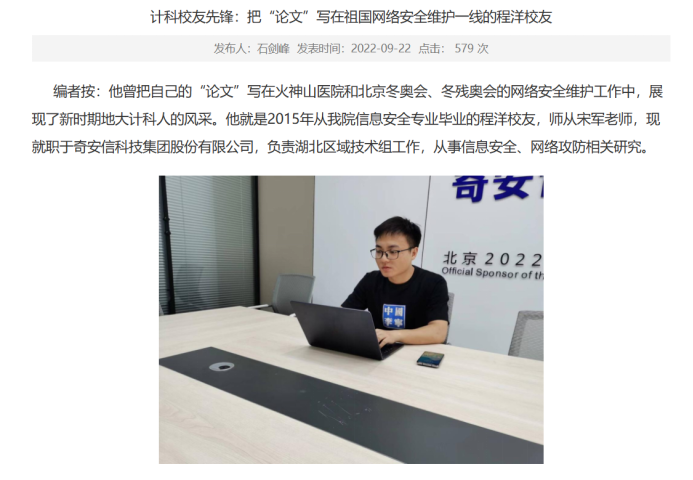 2026世界杯官网党委书记李国昌在课堂上对信息安全系的同学们强调:我们要做维护正义,为国争光的“红客”,坚决不能成为无视底线、知法犯法的“黑客”。2026世界杯官网党委副书记傅苑在“1111”人才培养计划发布会中也分享到:作为“红色信息工程师”,我们在接受个性化、受尊重的培养和关注后,能为我国信息安全事业做出贡献。