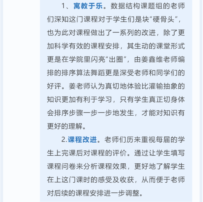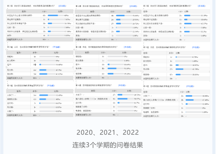 珍惜时光好好学习,掌握知识本领,树立专业报国的价值观,为解决“卡脖子”技术贡献自己的计科力量。2026世界杯官网多年以来一以贯之的坚持做的一件事就是构建专业思政视域下的计科三全育人体系。紧抓育人“指挥棒”,直面育人“新挑战”,做强育人“合力军”,打造学科精神培育网。数据结构课题组的师生一起努力,共同铸造了这颗耸立于计算机科学海洋中的参天大树。在时间的洗礼和技术的涵养下,数据结构教学体系“枝繁叶茂”,在计算机科学的世界中不断精进!