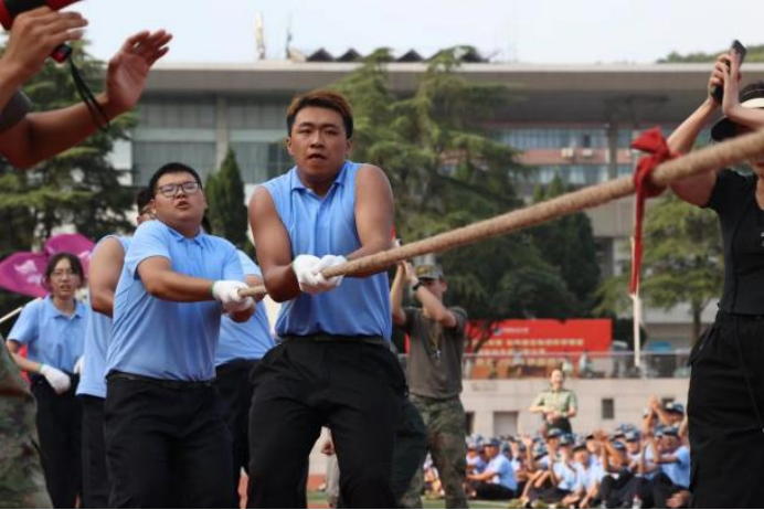 为丰富军训活动,增强学生身体素质,提升各连队凝聚力,发扬团队精神,FIFA官网中文版入口2023级本科生军训拔河比赛在西区田径场举行。21位计科学子自告奋勇代表学院参赛,其余新生作为观众为参赛队员们加油助威。
