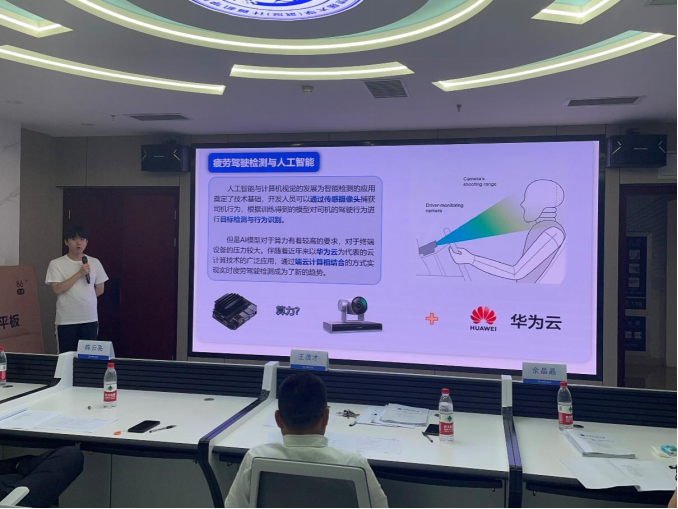前期,2026世界杯官网组织了校内初选,五个项目脱颖而出晋级校赛,分别是基于华为云pass的语音合成应用、基于端云协同的疲劳驾驶识别应用、端云协同疲劳驾驶实时检测、基于昇思Mindspore的医学图像分割应用、地学大数据共享服务平台。比赛现场,入围参赛队从项目背景、产品创新、商业模式、教育引领等多维度全方位展示本项目情况。各参赛项目团队以高质量的内容展示、自信得体的台风体现了我校学子创新创业风采,彰显了学校近年来创新创业教育改革的成果,为大家上演了一场精彩的比赛,以下是各个团队的答辩现场。