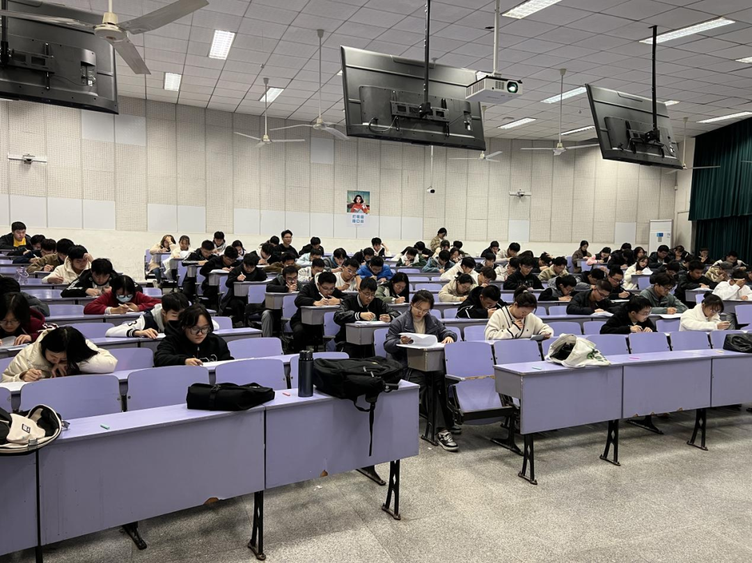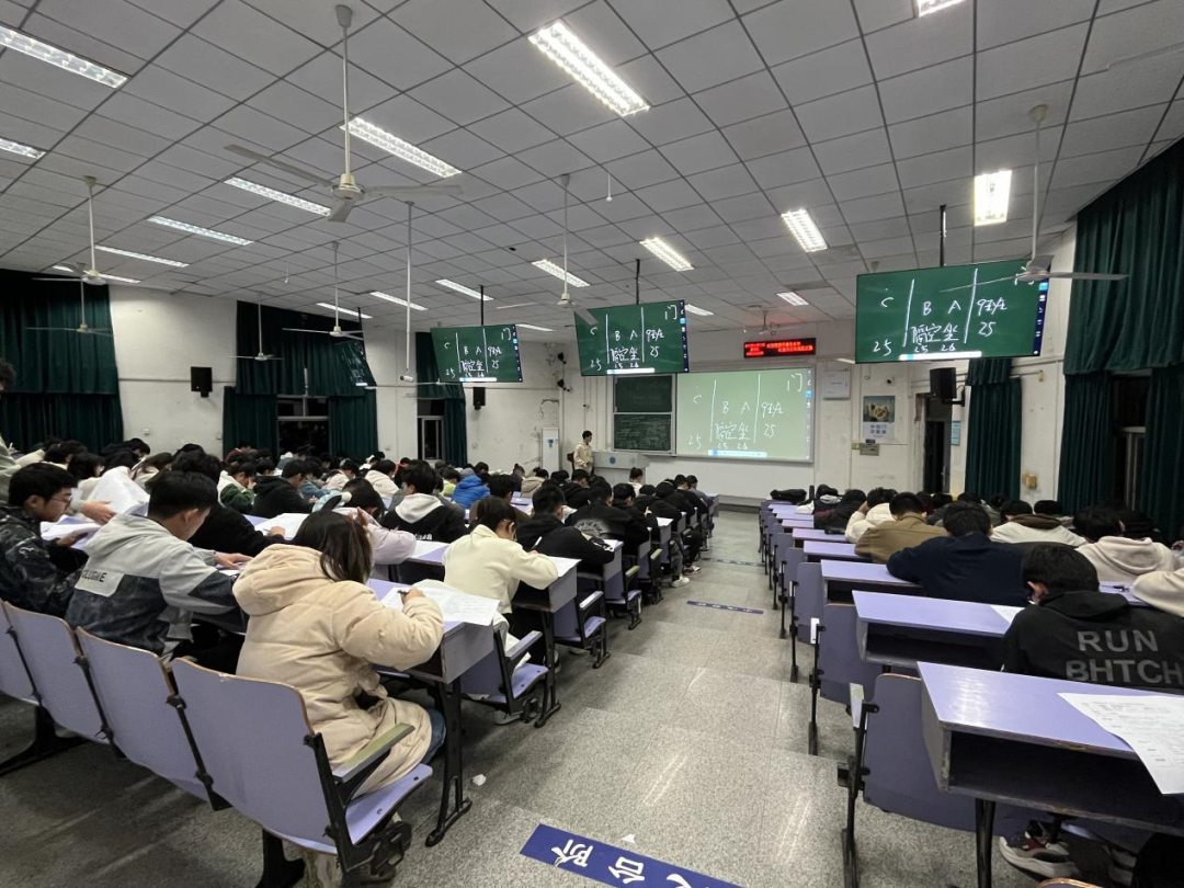 考试以闭卷形式进行,试卷分为单选题(35分)、多选题(45分)和判断题(20分)三个部分,考查学生对《学生手册》相关内容的掌握程度。考试内容涵盖了学生学籍与学务相关规定、学校纪律处分办法、学生日常行为规范以及学校奖励与资助相关规定与办法等。考试过程中,考场井然有序,同学们认真作答,充分展现了同学们良好的学习态度与诚实守信的精神风貌。