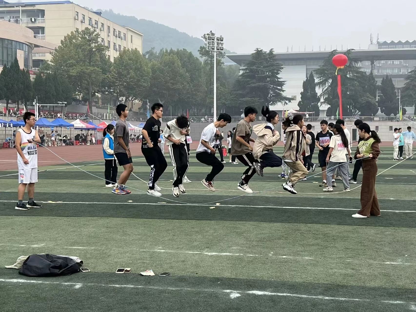 除了竞技性极强的赛事,本次秋季运动会还开设了许多趣味项目,有袋鼠跳、掰手腕、掷飞镖等,在紧张的赛程中为我们带来了耳目一新的别样体验。其中,教职工组胡双海老师获得60米滚铁环第二名,男子乒乓球团体赛获得第三名的佳绩。