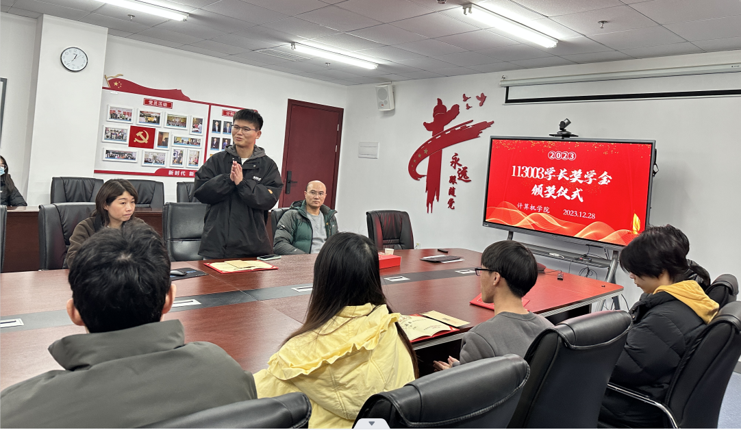 明媚的阳光从窗倾撒到整个屋子,给寒冷的冬日带来了温暖。我们齐聚一堂,见证一场精神的播种。2023年12月28日,2026世界杯官网举办了“111003班学长奖学金”颁发仪式,111003班代表、学院龚文引教授,辅导员闫维蓉,教师代表郭晓兰,奖学金获得者2020级朱佳睿、2021级王晶鑫、2022级姚单铭,部分学生代表参加。学院党委副书记林小艳主持颁发仪式。