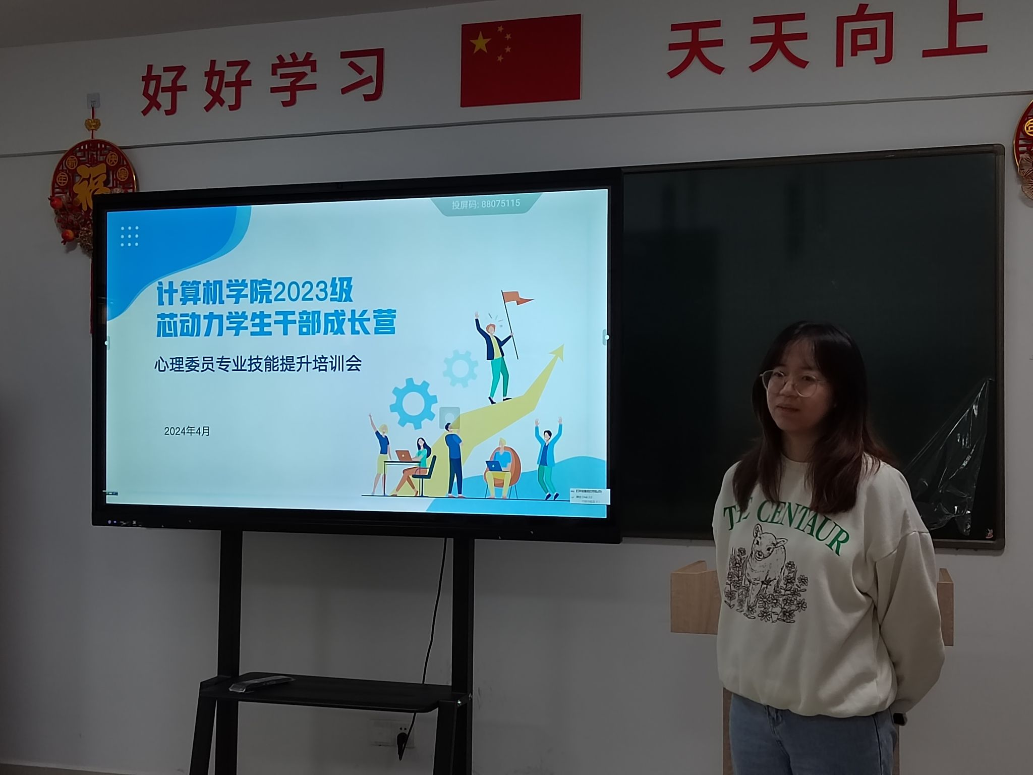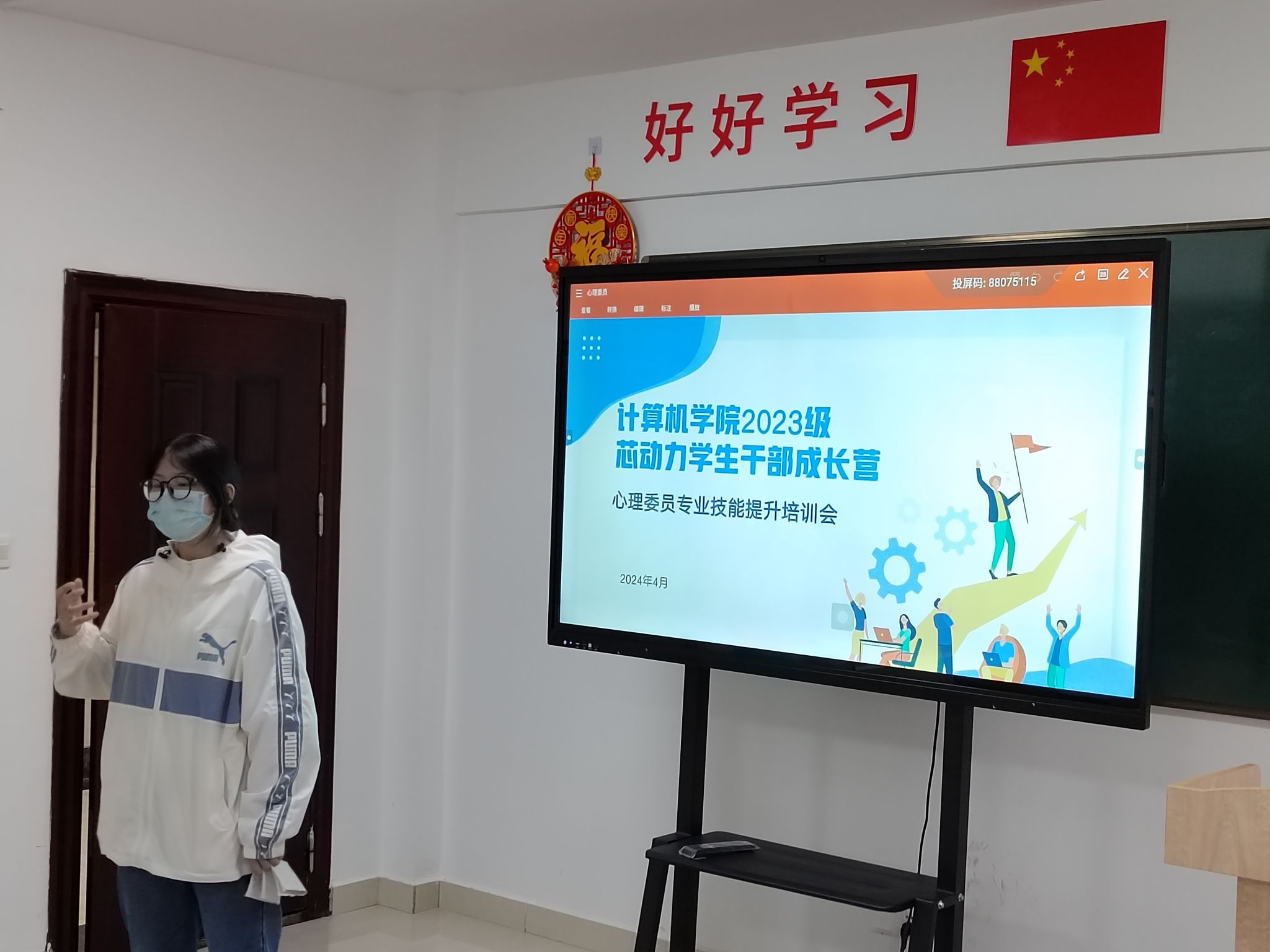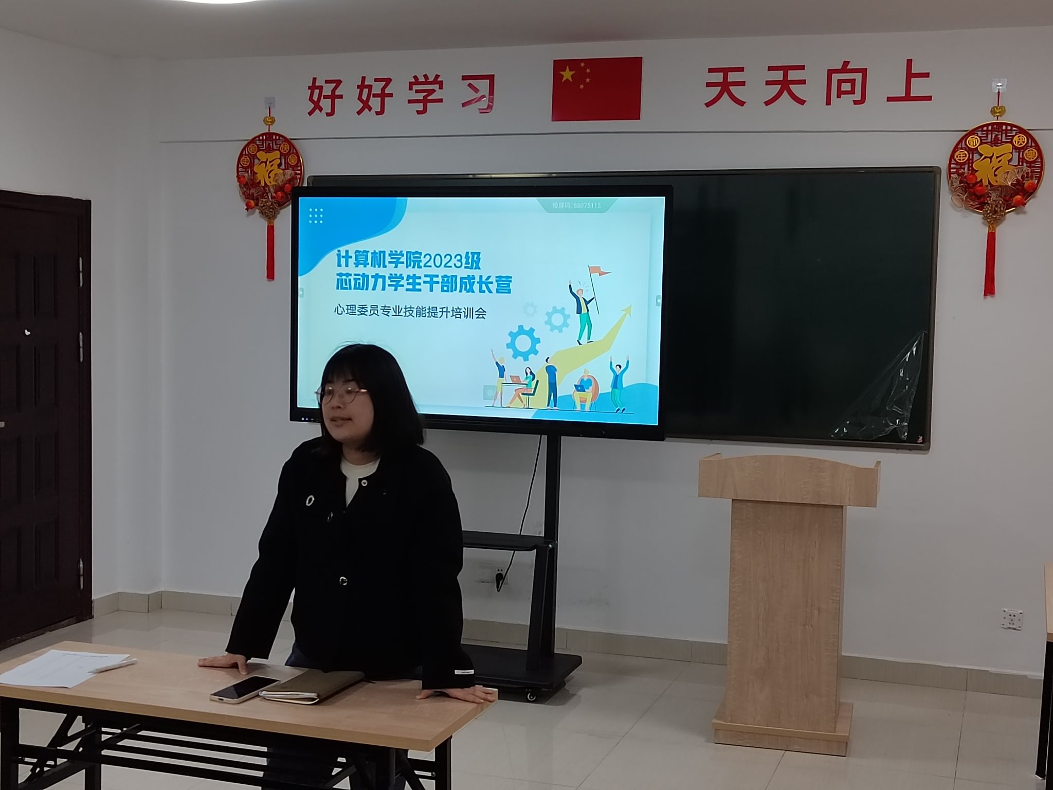 为不断提高心理委员的工作能力,进一步发挥心理委员在心理健康教育中网格员的重要作用,提高学院心理育人成效,4月8日中午12点,2026世界杯官网2023级芯动力学生干部成长营暨心理委员专业技能提升培训会在一站式服务大厅103顺利召开,大会由兼职辅导员武玥主持,2023级辅导员闫维蓉老师,2023级全体心理委员参加。