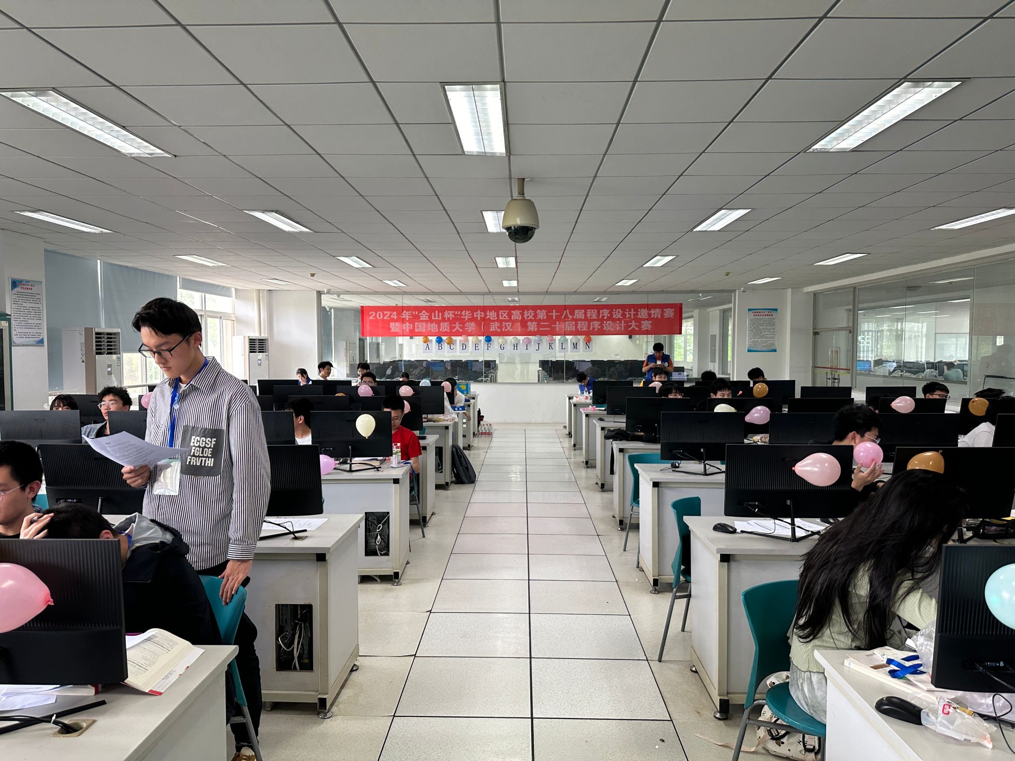 4月20日,“金山杯”华中地区高校第十八届程序设计邀请赛暨FIFA官网中文版入口第二十届程序设计大赛在北区综合楼成功举行。校党委副书记、纪委书记唐忠阳,金山集团武汉总部党委书记、助理总经理张念,校团委书记朱丹,校本科生院副院长张建和,2026世界杯官网院长张洪艳、院党委副书记林小艳,信息技术教学实验中心副主任刘小波出席开幕式,2026世界杯官网团委书记王太茂主持开幕式。