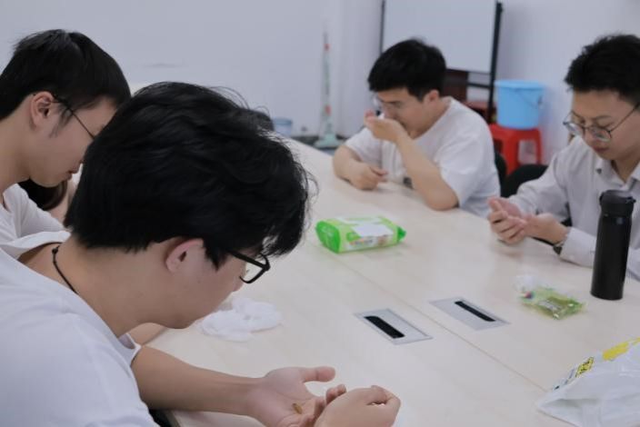 闫老师指出,规律的正念练习可以有效缓解焦虑、增强专注力、提升幸福感,是应对压力与挑战的重要心理资源。带着这样的认知,同学们开始走进一系列正念体验活动,在真实的感受中理解“当下即是力量”的深意。通过“正念吃葡萄干”的初体验环节,引导大家调动五感——观察葡萄干的纹理、嗅闻其香气、感受舌尖的触感与味道,让同学们在细微处体会“专注当下”的宁静与力量。通过“正念吃葡萄干”的初体验环节,同学们纷纷表示了自己的感觉。大家将一颗普通的葡萄干当作新奇的探索对象,通过视觉、触觉、嗅觉的多重体验,同学们重新发现了平凡事物中的美好。当葡萄干最终被放入口中时,有同学感叹:“这种专注品味的感觉,让我暂时忘记了堆积如山的学习压力”。通过这场沉浸式的五感探索,大家惊喜地发现了日常中容易被忽视的美好,也感受到“专注当下”带来的宁静与力量。小小的一颗葡萄干,成为通往内心世界的桥梁。