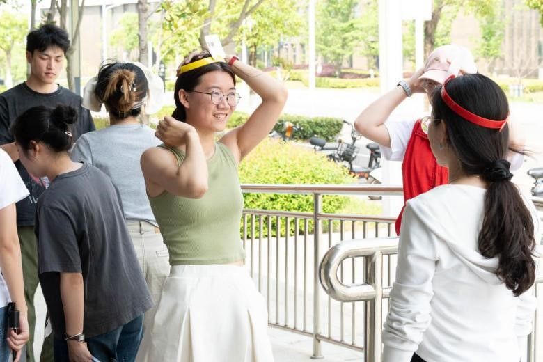 其中,在“乒乓球传递”任务点,队员们手持长筷,化身“乒乓搬运工”;“挤眉弄眼”点位则上演了一场表情管理大战,考验五官配合度;而“Yes or No挑战”则掀起推理热潮,队友间的默契配合引发阵阵欢笑;在“心理知识问答”环节,大家则化身“心灵探索者”,开启了一场心理奥秘之旅。