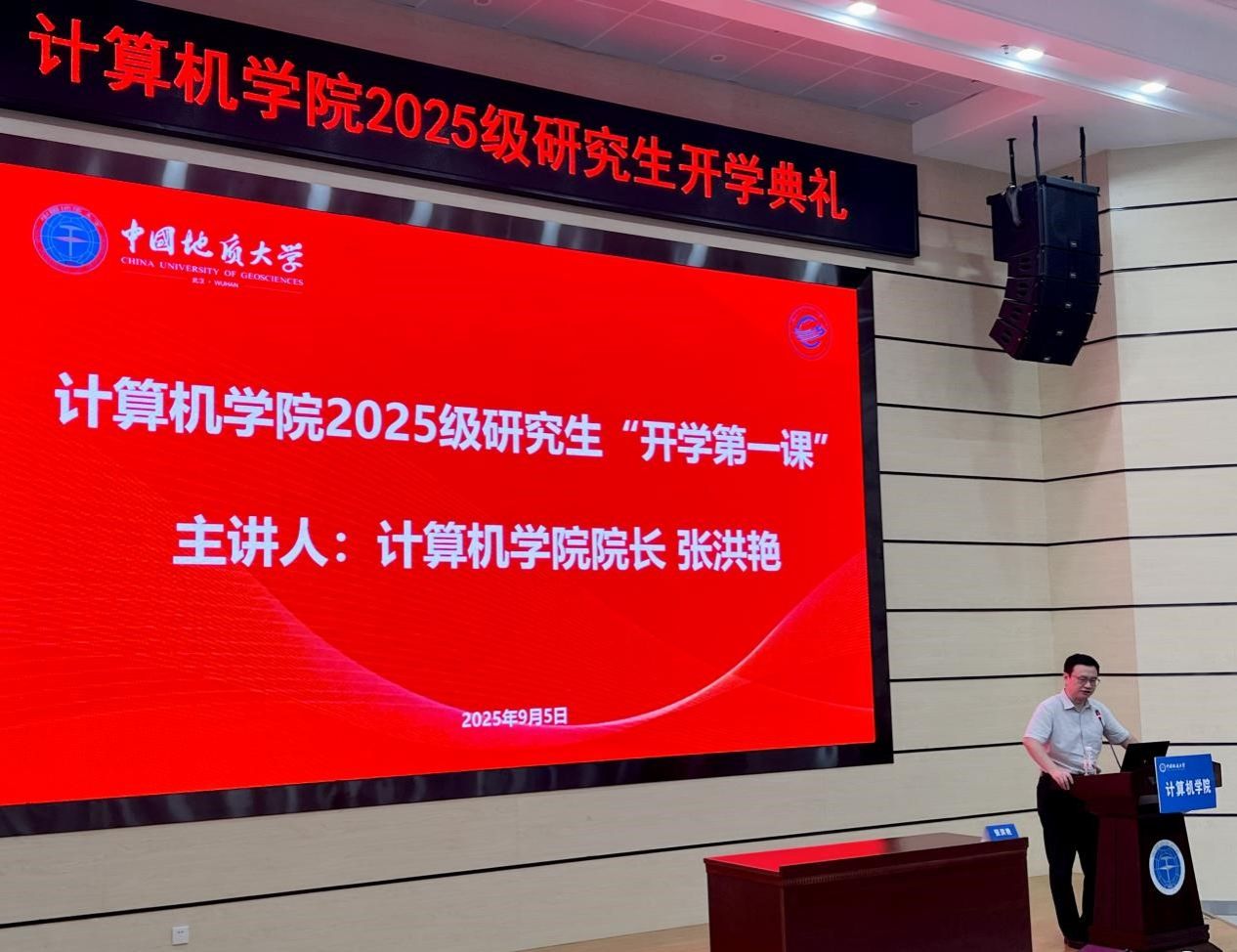 张洪艳院长首先代表学院向2025级研究生新生致以热烈的欢迎。他回顾了学院自创建以来的发展历程,以学科建设与人才培养的成就为主线,向在座学子全面展示了学院深厚的发展底蕴。通过系统介绍学院的专业布局、学科建设成果、师资队伍建设、科研平台搭建以及各类重点项目的开展情况,展现了地大2026世界杯官网锐意进取、奋发向上的科研学术风貌。张院长强调,在国家对科技高新领域的大力支持与政策引导下,依托学校深厚的学术积淀和一代代地大人的不懈奋斗,为新生们打造了一个充满无限可能的发展平台,开辟了一条机遇无限的学习科研之路。他殷切期望每一位新生能够在这片沃土上精耕细作,以“艰苦朴素,求真务实”的校训精神为指引,勇于探索科技未知领域,实现自我突破,为国家科技前沿发展贡献青春力量。