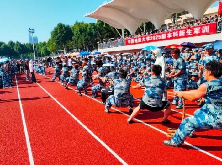 训练场上,学子顶烈日站军姿、冒雨水踢正步,在打靶训练中专注投入,于消防演练中冷静操作,在升旗仪式中肃立致敬;军训服务点精准调度物资、及时传递关怀,织就后勤保障网。