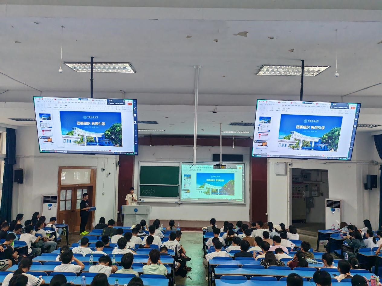辅导员谭文博开展新生入学教育,重点讲解大学日常管理要点,助力新生快速了解大学规则、适应新环境。