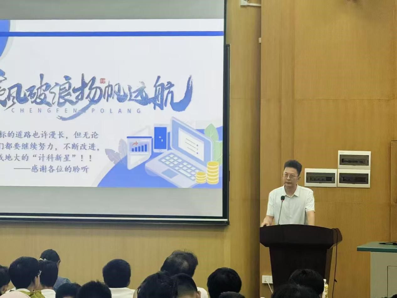 随后,科技部副部长胡家维同学围绕双创、科研、竞赛与社团活动四个维度,为在场同学带来详实的内容分享。他详细阐述了“双创”活动的相关内涵以及其对未来发展的潜在意义,并鼓励大一新生将科技论文报告会作为开启大学科研实践的第一站,引导他们积极参与到科技活动中去。此外,他还介绍了学院支持的多项科技竞赛,包括ACM程序设计竞赛、CTF网络攻防比赛等,并指出这些平台不仅为团队协作和自我展示提供了宝贵机会,还能锻炼同学们的实践能力与创新思维。最后,胡家维同学向大家介绍了ACM协会、网安协会、智能基座协会等科技类社团,鼓励新生在专注学业的同时,踊跃参与课外实践,实现学术交流、技能拓展与兴趣培养的全方面发展。