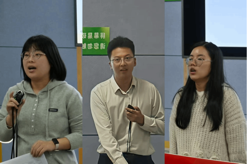 人文会场中,闫维蓉老师先从研究方法角度强调调查对象的代表性、问卷设计的严谨性、论证过程的严密性以及文书撰写的规范性,为同学们提升研究质量指明了方向。她寄语新一代计科学子,希望同学们在今后的研究中更加注重方法论的训练,继续探索,勇攀高峰,不断提升自己的综合素养。谭文博老师围绕科研效率创新性提出“减负”与“加压”双路径,期望同学们在实践中锤炼综合能力。他进一步阐释,“减负”重在优化研究方法,“加压”贵在深化研究内涵,二者相辅相成,方能提升科研工作的质量和效率。刘佳丹老师赞扬了同学们选题的新颖性与丰富性,鼓励大家保持主动探索的态度,并为同学们送上成长路上的真挚祝福。她表示,学院将一如既往地为同学们提供全方位的支持,期待大家在未来的科研道路上继续保持这份热情与创造力。