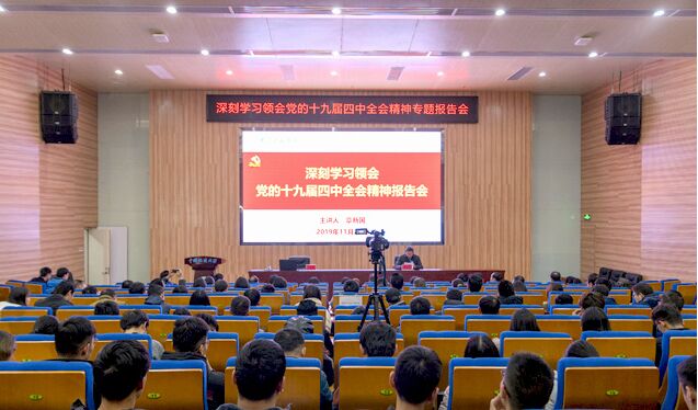 (记者霍少孟)11月28日,深入学习领会党的十九届四中全会精神专题报告会在世界杯官网报告厅举行,湖北省委宣传团成员、湖北省委政策研究室副主任章新国同志作宣讲报告,世界杯官网全体院领导、院直支部、信安支部、网工支部、部分学生支部的党员和新校区各学院260余名干部师生聆听报告。校党委副书记、纪委书记成金华主持报告会。