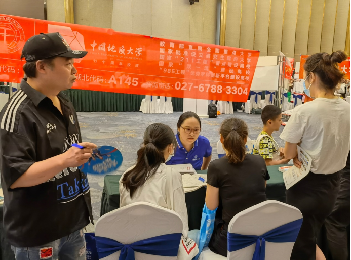 2022年6月底到7月初,在本科生院招生办的支持和指导下,学院全面铺开线下招生宣传线路,老师们顶着酷暑赶赴全省31个县市的40余个高招咨询会,进行现场宣传和咨询、答疑工作,累计发放招生宣传册12000余份,零距离介绍学校、学院和专业情况。广大党员教师更是充分发挥模范带头作用,以专业的解答和热情的服务态度赢得了家长和考生的信赖,在咨询会结束之后,与家长、考生互加微信,共盼相逢地大。