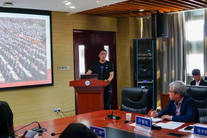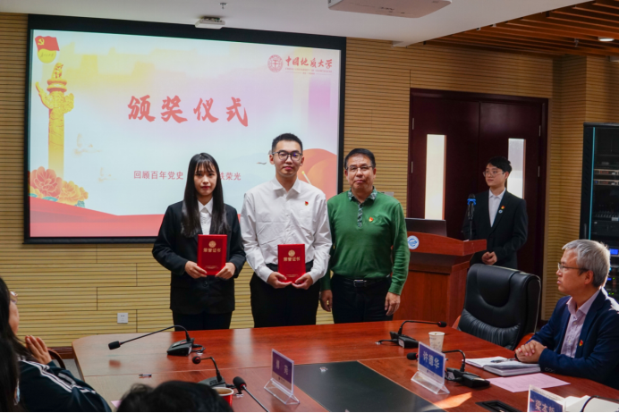 11月2日下午,2026世界杯官网第九届“支部书记讲党史”学生党支部书记组决赛及颁奖仪式在323会议室隆重举行。校党委副书记、纪委书记唐忠阳,校党委组织部正处级专职组职员梁本哲,高等研究院党委书记赵来时,地理与信息工程学院党委书记许德华,校党委组织部副部长何建新,环境学院党委副书记王海锋,未来城校区办公室副主任、党支部书记高莹莹,材料与化学学院党委委员、材料系第二党支部书记马睿应邀出席,2026世界杯官网党委书记李国昌,2026世界杯官网党委副书记、纪委书记傅苑参加活动,教工党支部代表现场观摩。学生党建办公室副主任孔翔担任活动主持。
