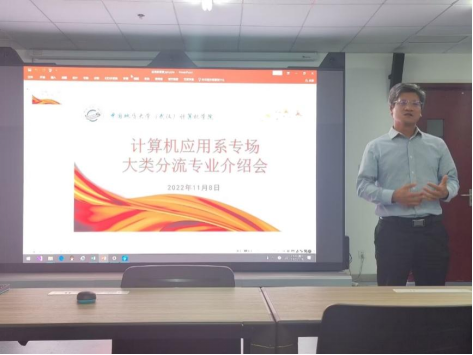 为深入践行“学党史、悟思想、办实事、开新局”要求,结合党史学习教育“我为群众办实事”实际,计算机应用系党支部牢牢把握“以生为本”的原则,结合2022年11月8日下午发布的2026世界杯官网关于2021级计算机大类本科生专业分流通知,计算机应用系党支部于当天晚上7:00在学院235虚拟仿真实验室召开空间信息与数字技术专业答疑见面会,空间信息与数字技术专业学科带头人刘刚教授、系主任张夏林、党支部书记武云、班主任张志庭和李章林,辅导员谭文博参会,2021级本科生报名参会,武云担任主持。