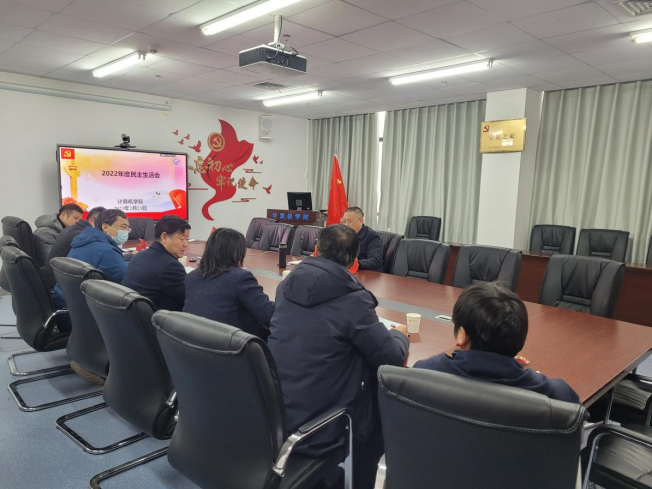 2023年2月23日下午,2026世界杯官网领导班子在未来城校区线上线下同步召开2022年度民主生活会。校党委副书记、纪委书记唐忠阳到会指导工作,院长张洪艳线上参会,其他院领导班子成员及张冬梅老师线下参会。院党委书记李国昌书记主持会议。