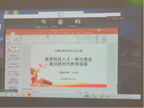 刘刚副院长线上分享的读书报告主题是《教育、科技、人才一体化推进 建设新时代教育强国》。他汇报了学习党的二十大报告及《中国教育现代化2035》、中共中央政治局就建设教育强国进行第五次集体学习及学校第十三次党代会报告的体会,重点论述了教育、科技、人才一体化推进的重要意义、融合路径及推进策略,建议领导干部紧扣学校和学院创新人才培养、人才队伍建设、科技事业发展等关键环节,切实提升做好新时代教育工作的认识水平和实践本领。