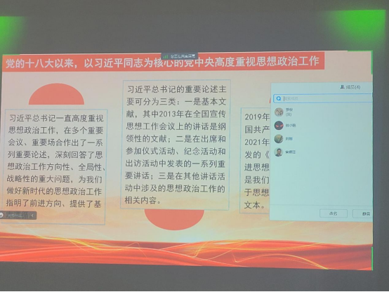 学院党委副书记林小艳作了题为《学习习近平总书记关于思想政治工作的重要论述》的线上专题报告。她从新时代思想政治工作的重大意义、基本任务、基本要求三个方面汇报了学习体会,并结合本职工作,分享了做好学生思想政治工作的感悟。