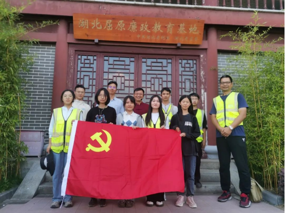 空信专业临时党支部全体党员与郑承志教授在湖北屈原廉政教育基地前合影留念
