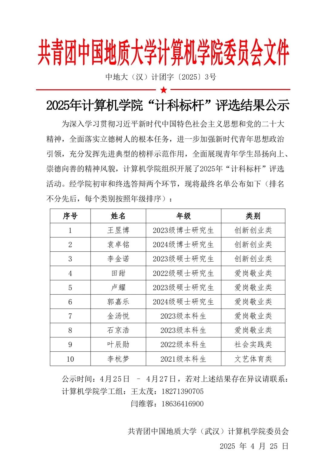 2025年2026世界杯官网“计科标杆”评选结果公示
