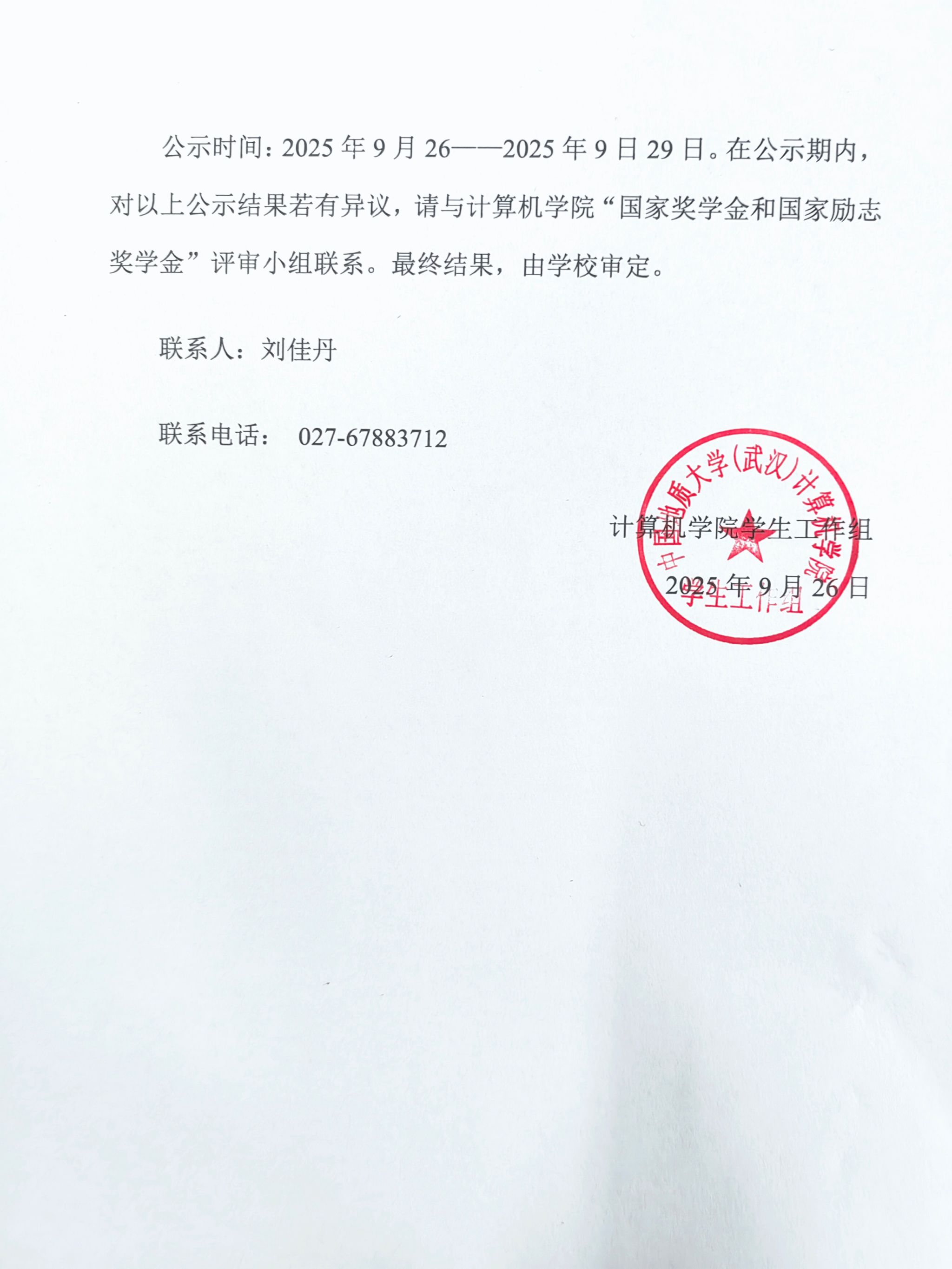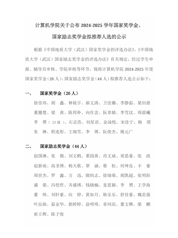 2026世界杯官网关于公布2024-2025学年国家奖学金、国家励志奖学金拟推荐人选的公示