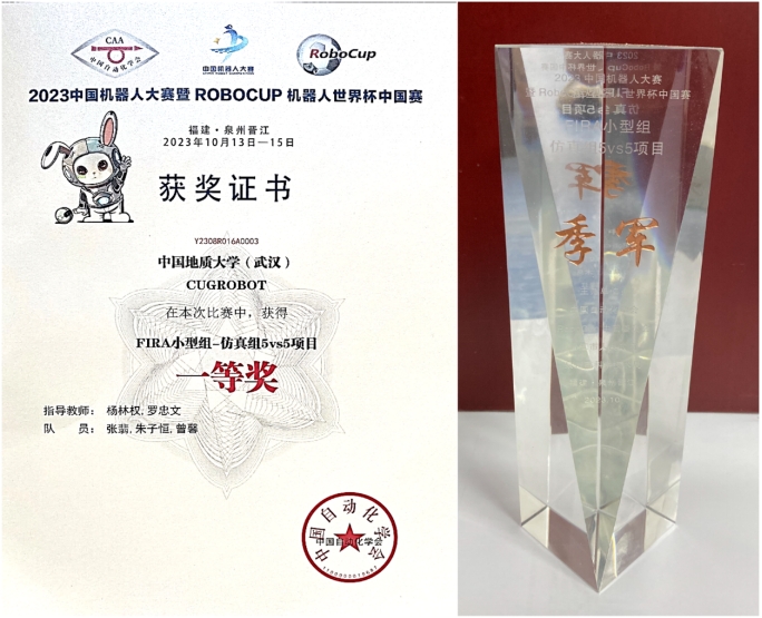 2023年中国机器人大赛暨RoboCup机器人世界杯中国赛(以下简称:中国机器人大赛)落下帷幕,世界杯官网CUGROBOT代表队参加。经过激烈角逐,杨林权、罗忠文两位老师带领研究生张翡、夏倩倩和本科生朱子恒、王哲、曾馨、李婉雪、王晶鑫获得FIRA仿真组5vs5项目季军、一等奖,FIRA仿真组11vs11项目季军、一等奖。比赛过程历历在目,记忆犹新。