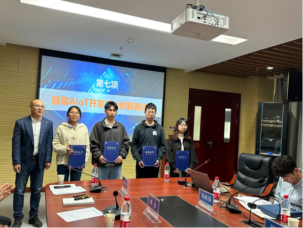 陈虹雨经理介绍了小米实训箱平台。周茂华总经理向世界杯官网四位同学颁发了2022年AloT开发平台创新赛获奖证书。