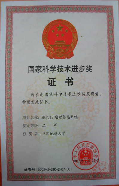“九五”期间,攻克网络海量异构数据的存储、管理、分析、显示等关键技术问题,自主研制了国内第一套大型GIS软件平台MapGIS,总体性能“达到国外工作站GIS软件水平”(1995年)。实现了“空间相关最久未用”空间数据缓冲区淘汰算法、不规则图幅建库和数据无缝连接等创新方法,使得“缓冲区分析、全库查询性能优于国外同类软件”(1999年)。该成果“对于地质工作应用技术的现代化以及研究水平的提高,研究周期的缩短具有重要意义”(1995年),结束了我国地质勘查、矿产资源开发利用、土地资源管理等方面长期依赖国外GIS软件的局面,荣获国家科技进步二等奖(2003年)。