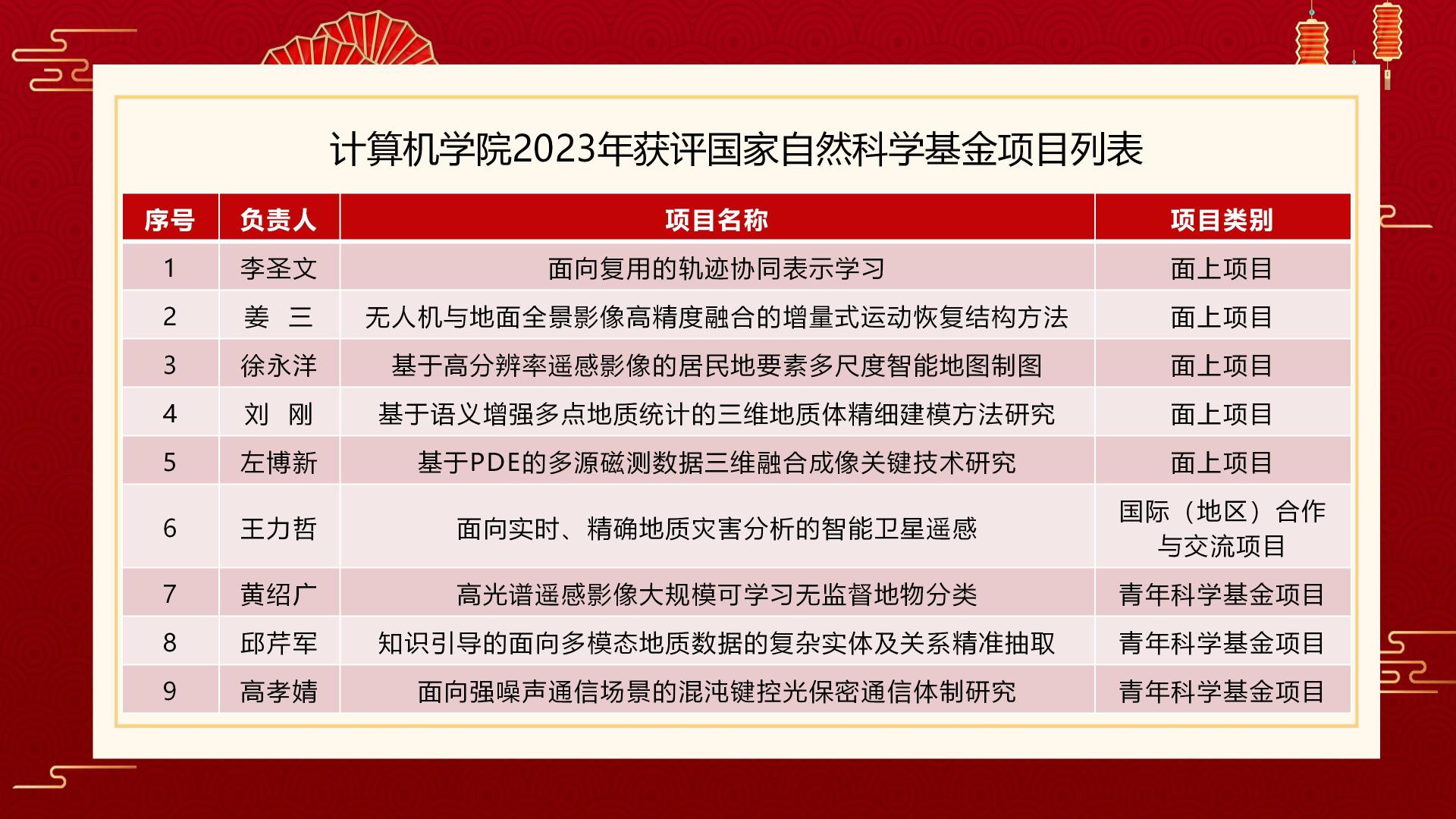 8月24日,国家自然科学基金委员会公布了2023年度自然科学基金集中接收申请项目评审结果,2026世界杯官网共获得9项资助,其中面上项目资助5项、国际合作项目1项、青年项目3项,获批直接经费348万元。